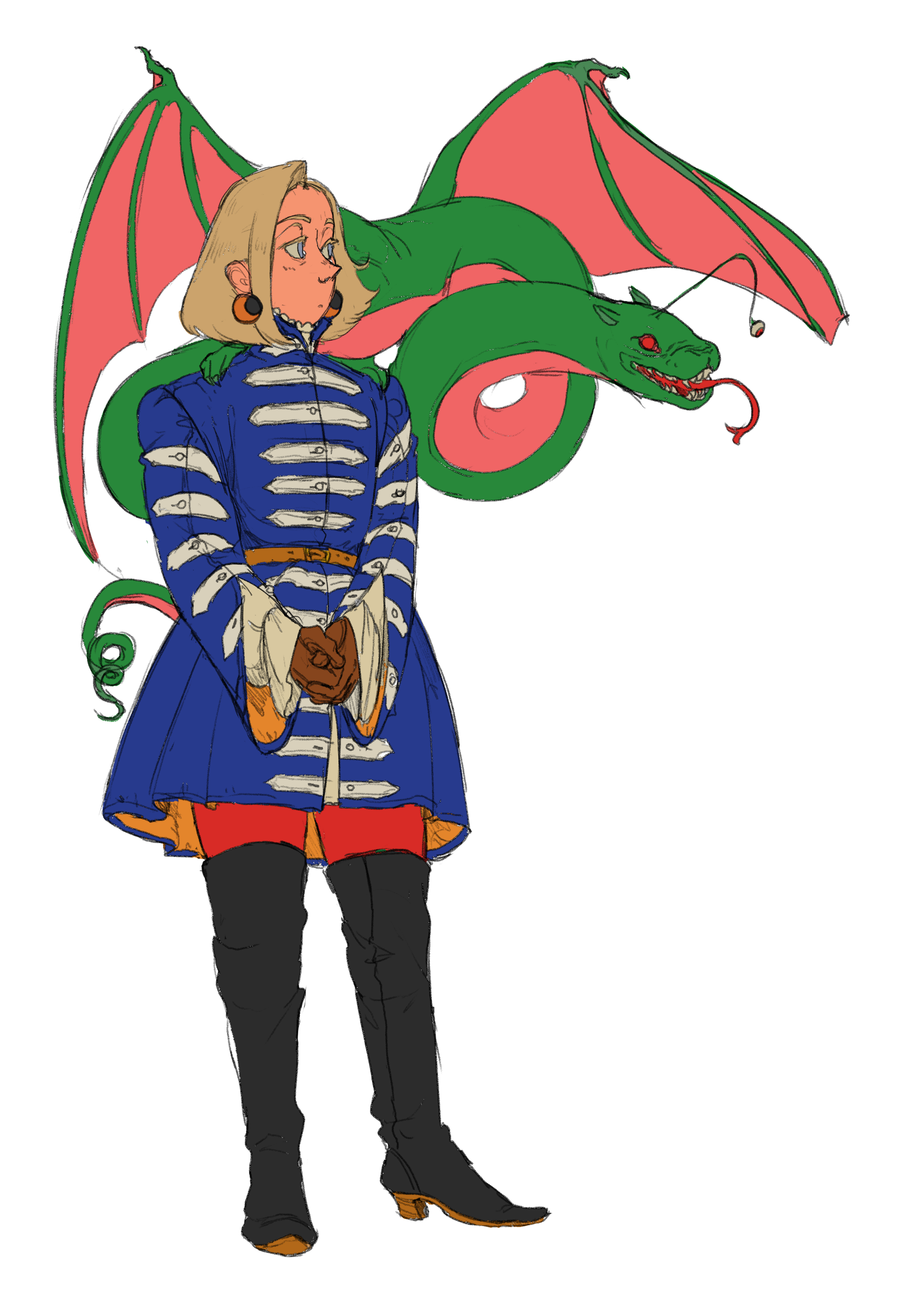 It sounds so cheesy and stupid to be like, I had a vision. But I kind of did just have a vision of the character who would become Jules. I'm sure there were prompts and things that brought me this image in my brain of a guy in really bright colored medieval clothes eating modern gummy worms and smoking a cigarette. And I was like, I need to draw that right now. I had some stupid idea where I was gonna have it be all in Shakespearean English, or become slowly over the course of the story, more Shakespearean English that it becomes less intelligible. But that would have been too complicated, and I can't do all that. But that's the only thing that I definitely abandoned very quickly. But most of it, I think it kind of became what I wanted it to become.