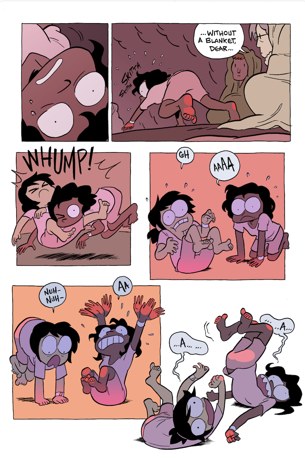 I think I learned a lot about gestures and acting from animation, hitting beats, that there’s sort of a rhythm to these things. With comics a completely different type of rhythm, but looking for those things I feel like I got from animation. That, y’know, if you’re doing storyboards you might kind of be counting these things out in your head, if you’re doing the individual drawings there’s like a little bit of math that you’re doing while you’re drawing each frame. So I think I’ve applied that math to comics in terms of hitting those emotional beats or those joke beats, whatever it might be, I’ve learned a rhythm from that.